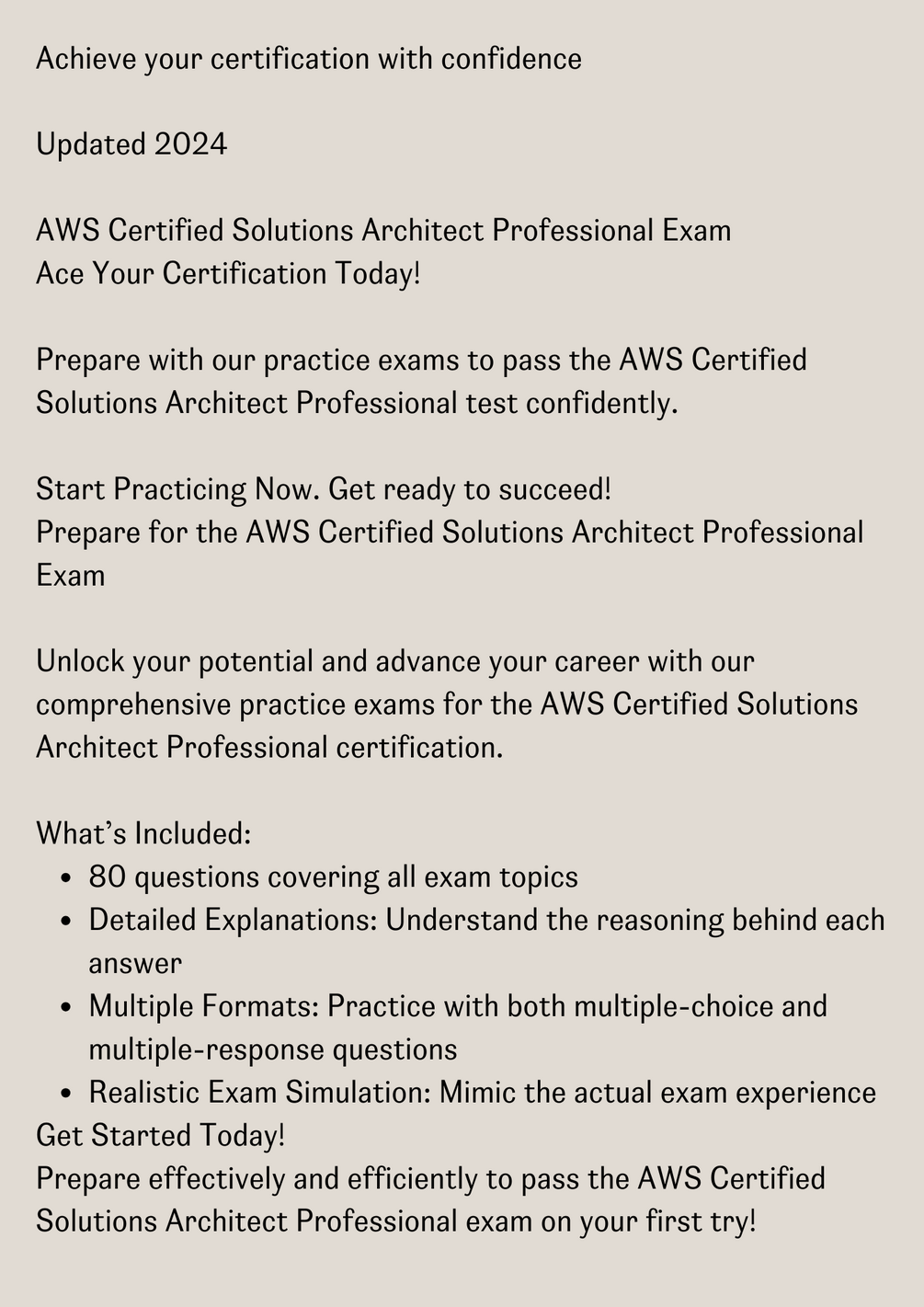 AWS Certified Solutions Architect Professional Certification Practice Exam - Updated 2024